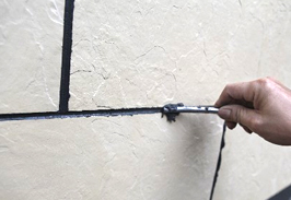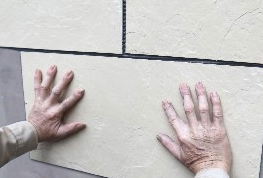 三、雙手挪壓產品,調整縫寬,用膠板拍打軟瓷嚴禁用手指按壓。